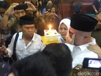Wakil Ketua Majelis Syuro PKS Hidayat Nur Wahid memberikan semangat untuk caleg PKS yang viral karena bernama Fransisca Santa Clause.
