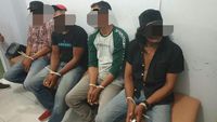 Personil polisi menangkap empat pria di Kabupaten Bireun, Aceh. Mereka diduga melakukan intimidasi dengan senjata tajam saat kampanye door to door.