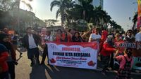 Forum Relawan Indonesia Bersatu pagi ini menggelar aksi bertajuk '1.000 Bunga Ucapan Selamat Untuk Pak Jokowi'.