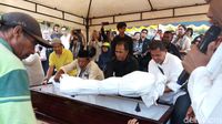 Jenazah Pupung terlebih dahulu dimasukkan ke liang lahad. Setelahnya, jasad Dana menyusul sang ayah. Tangis pun kemudian pecah.
