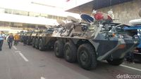 Polisi mengerahkan kendaraan taktis di Gedung DPR. Kendaraan dikerahkan untuk mengamankan pelantikan anggota DPR yang baru.